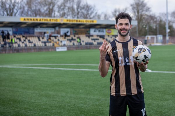 An action packed first half saw Annan run out 3-0 winners in front of a healthy crowd at Galabank, as Tommy Goss scores a perfect hat–trick.
