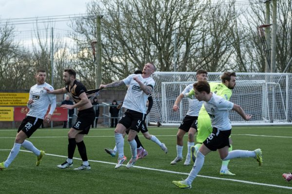 Edinburgh City nearly pulled one back just before the 10th minute when an Iserhienrhien header forced Albinson to get down low to make a save. However, Annan countered when Albinson spotted Goss making the run in behind the Edinburgh City back four. Albinson’s long ball over the top was caught on the half volley superbly by Goss, on his left foot, firing the ball in at the back post to double Annan’s lead.